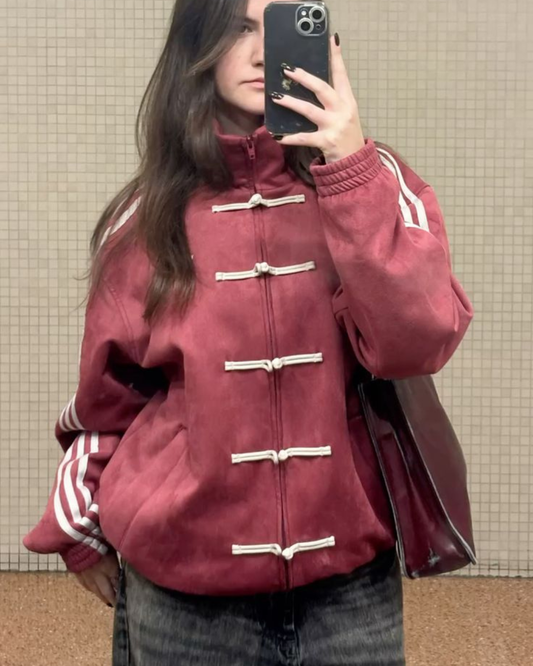 Red Suede CNY Jacket – Unisex Premium Streetwear Chinese New Year Edition