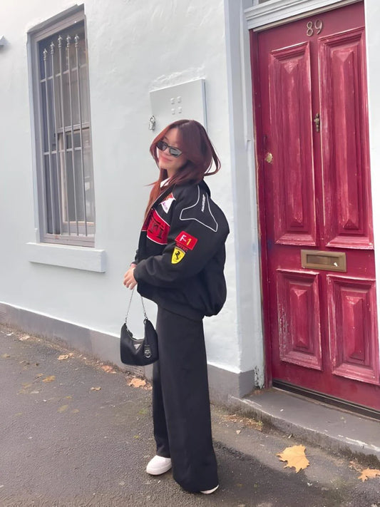 WoMen's Black F1 Racing Jacket | Streetwear Formula 1 Unisex racing Jacket