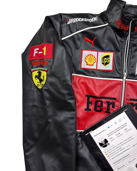 Ferrari Leather Racing Jacket l Unisex Racing Jacket l Streetwear Clothings